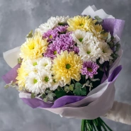 ГлавнаяКаталогМонобукетыХризантемыМонобукет из хризантем «Сиреневый рассвет»