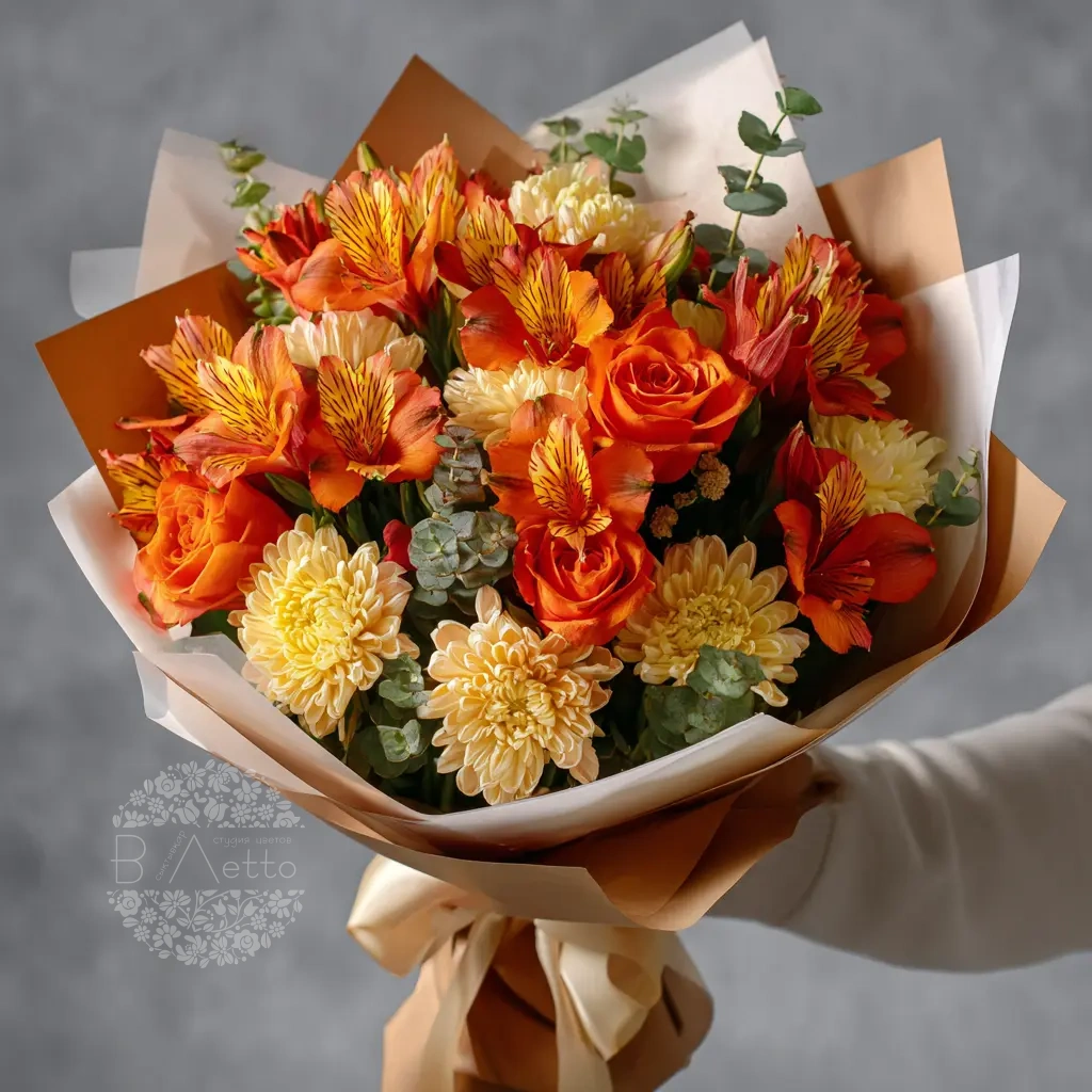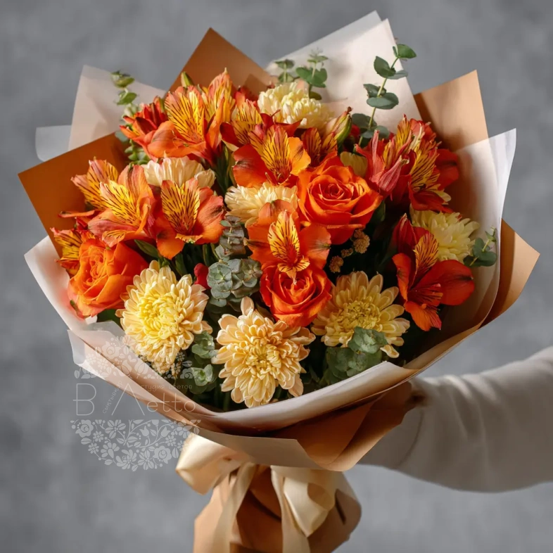 Яркие оттенки альстромерий в этом букете напоминают о жарких странах и насыщенной природе. Отличный вариант для летних праздников, отпускных встреч и эффектного комплимента.