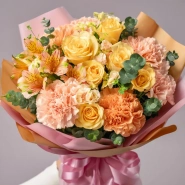 ГлавнаяКаталогБукетыГвоздикиБукет с гвоздиками «Солнечный закат»