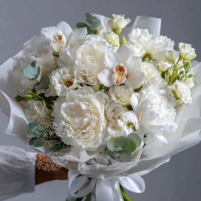 ГлавнаяКаталогБукетыПионыБукет с пионами «Снежное прикосновение»