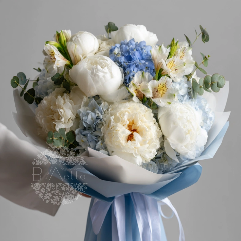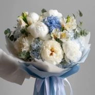 Лёгкий, как воздух, букет из пионов, создающий ощущение полёта и свежести. Универсальный вариант для романтического подарка, знака внимания или дополнения к основному презенту.