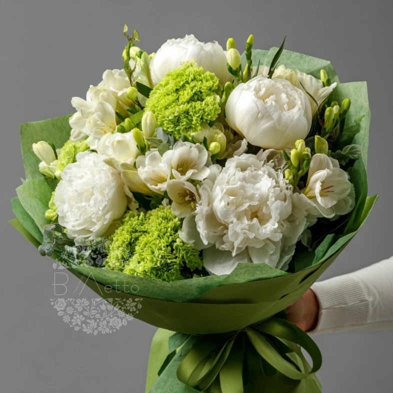 ГлавнаяКаталогБукетыПионыБукет с пионами «Нежный оазис»