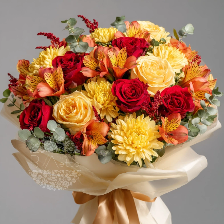 Букет с хризантемами «Огни сентября»