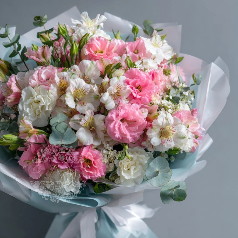 Свежесть и прохлада раннего утра — в каждом лепестке. Эустомы создают ощущение чистоты и спокойствия, которое хочется подарить близким. Универсальный букет с мягким посылом.