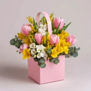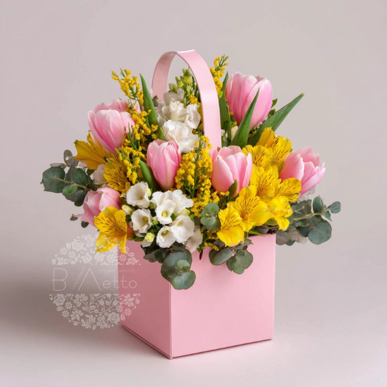 Жизнерадостная палитра и лёгкая форма делают эту композицию отличным выбором для весеннего настроения. Идеально для поздравлений и фотосессий.