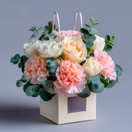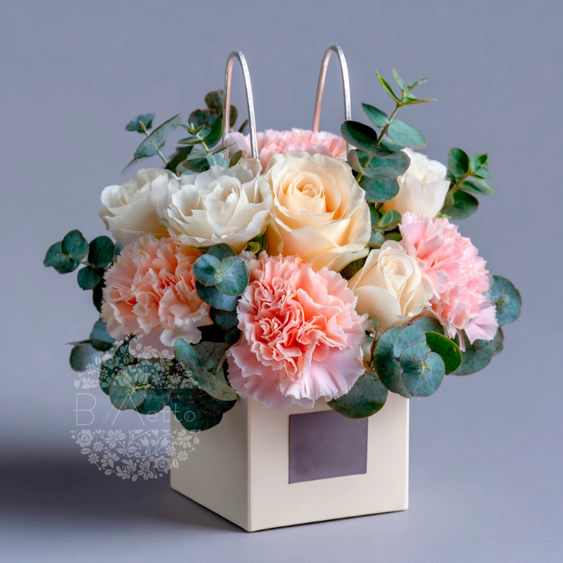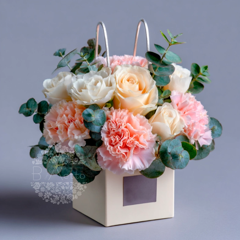 ГлавнаяКаталогКомпозицииВ сумочкахКомпозиция в сумочке «Шарм и утонченность»