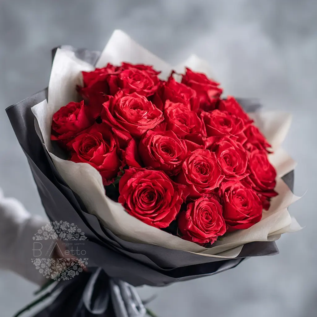Композиция, вдохновлённая моментом, когда солнце касается горизонта. Тёплый оттенок красных роз создает атмосферу уюта и романтики. Подходит для признаний и вдохновения.