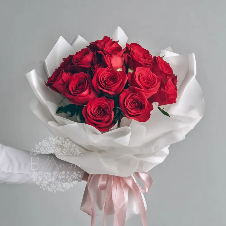 Идеален для эмоциональных встреч, свиданий и ярких впечатлений. Роскошные красные бутоны придают букету характер, а оформление подчёркивает глубину момента.